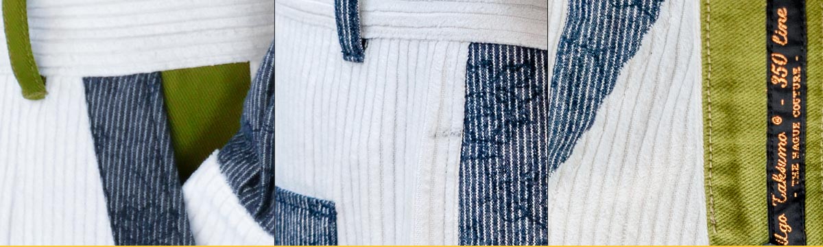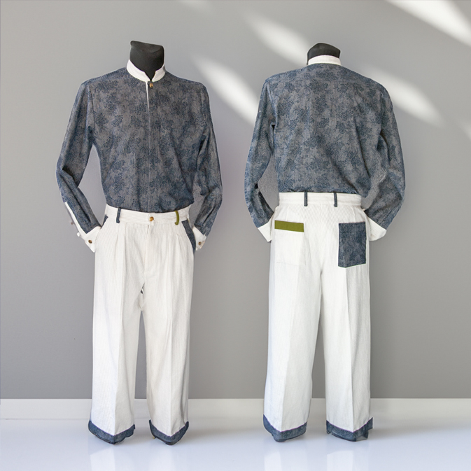 Crafted with meticulous attention to detail and a passion for design, the interplay of white corduroy and hues of green creates a captivating contrast that draws the eye. Delicate floral patterns add a touch of femininity and refinement to this modern garment. Whether commanding attention in a boardroom or savoring a relaxed brunch with friends.